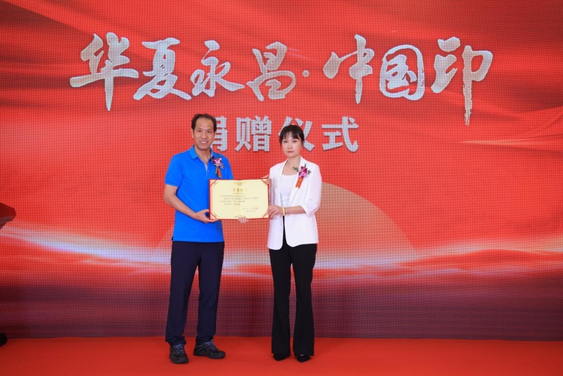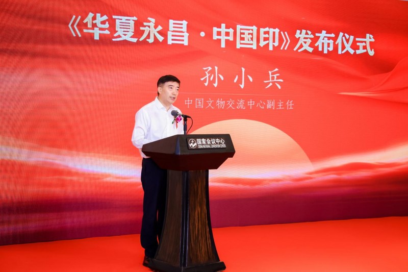 -2025年8月24日,《华夏永昌・中国印》发布仪式在国家会议中心隆重举行。故宫博物院原常务副院长李季,中国文物学会副会长、国家文物局革命文物司原司长岳志勇,中国工艺美术协会副会长李节,中国文物交流中心副主任孙小兵,中国工美集团业务发展部总经理胡伟,军事战略专家、研究员、军事科学院战争研究院主任高东广,沈阳“九·一八”历史博物馆藏品部主任白宇,中国工艺美术大师王希伟,中国文物报社教育合作传播中心负责人杨海平等领导嘉宾齐聚现场。