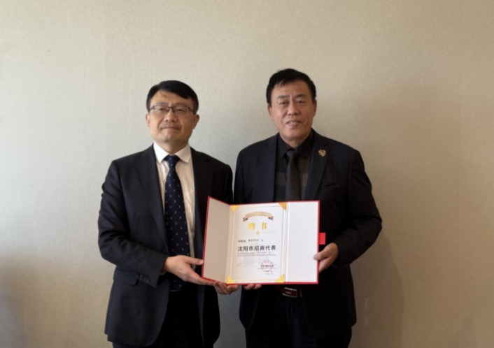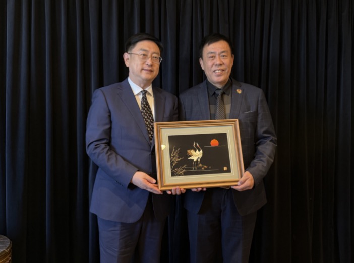 沈阳市副市长赵伟与澳洲中国东北同乡总会会长崔尚泽互赠礼品