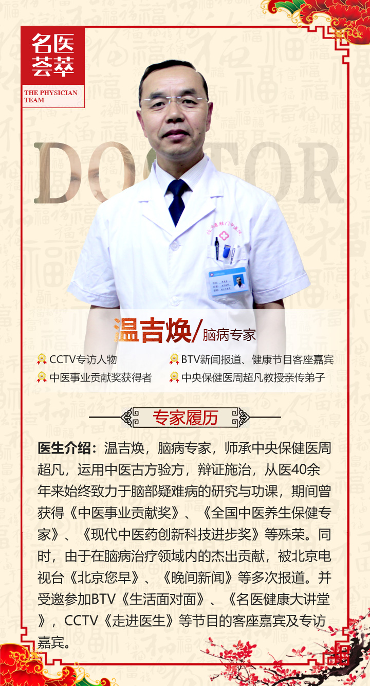 -在中医脑病诊疗领域,温吉焕医生以其精湛的医术和高尚的医德声名远扬。温吉焕毕业于陕西中医药大学临床医学专业,后于北京中医药大学进修脑病专业,拥有超过三十年的临床、科研与教学经验。他身兼数职,是中国老年学会促进教育医生、全国著名中医脑病医生,同时担任中国疑难病诊疗中心医生委员、中国医师学会会员以及中华中医药学会会员等重要职务,在业内备受尊崇。