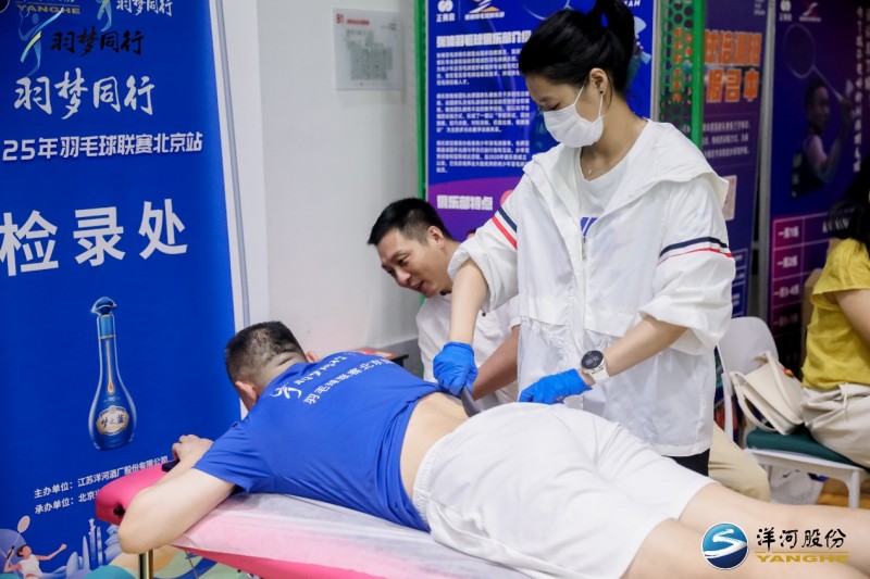 赛场旁设立的运动康复站,配备专业康复师,针对羽毛球运动常见的肩袖损伤、腰部紧张等问题,为选手提供康复服务,选手在高强度对抗后出现腰部酸痛,康复师立即为其进行筋膜放松,详细讲解热身动作与恢复技巧。同时,康复站还提供健康咨询服务,真正做到竞技与健康并重。