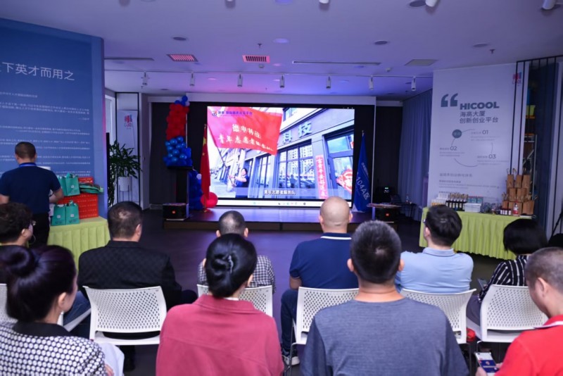 在庄严的国歌声后,大家一起观看了德申宣传片。