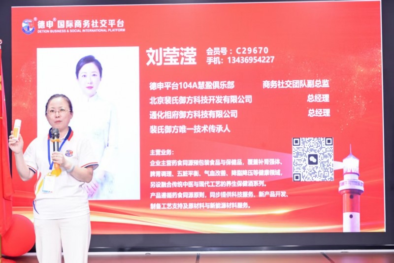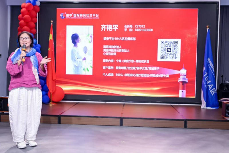 104A-3总监刘红艳作为优秀分区总监进行了分享。刘红艳总监分享了自己的事业和德申的链接。如今刘红艳总监旗下投资的产业漫心酒店欢乐谷店就作为北京用户中心为104A及全国德申会友提供服务。