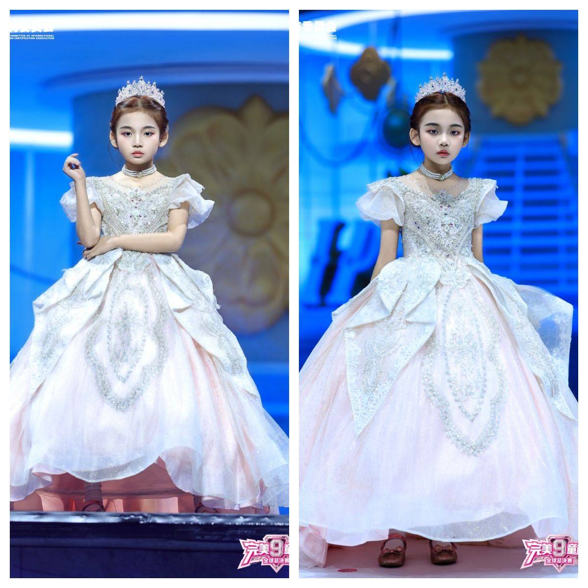 在开幕式舞台上,stacey 宛如童话中走出的公主✨ 造型以华丽宫廷风为主,浅粉渐变裙轻盈蓬松,精致珠钻点缀勾勒裙身,搭配闪耀皇冠,尽显优雅高贵。表现力上,手持装饰板时,姿态从容,眼神明亮且自带故事感;变换姿势后,单手轻抬、抱臂而立,把公主的矜贵与舞台的时尚感融合,每一步、每一个眼神,都稳稳拿捏住高级秀场氛围,将造型的华丽完美诠释,成为舞台上亮眼的存在~