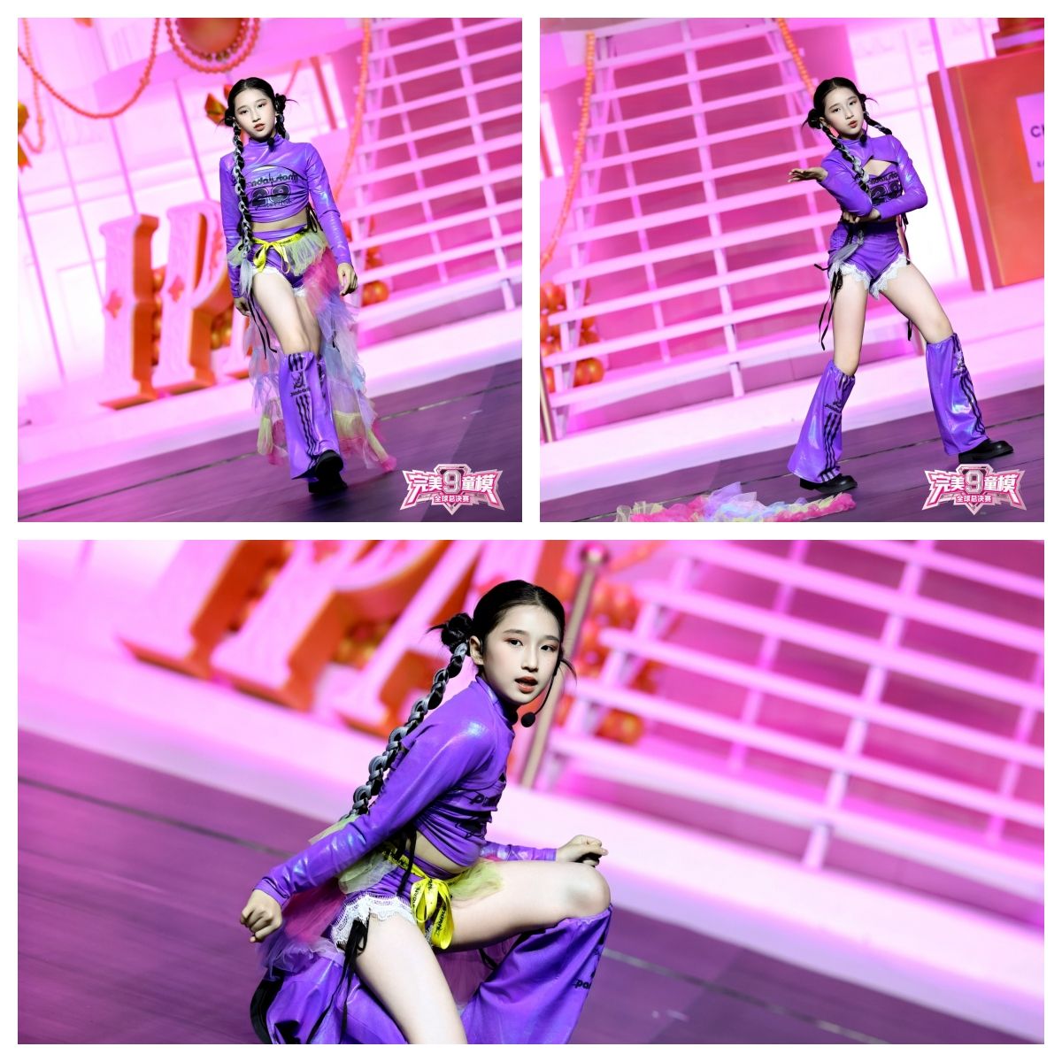 许馨予在完美童模总决赛的舞台上点燃《Play with Fire》的炽热旋律,紫色亮面战袍裹着星云漩涡,彩虹纱裙在腰际燃起层层焰浪,阳光蝴蝶结化作金箔火星四溅。当粉红光浪被烈焰染成熔岩色,几何方块背景熔化成流动的岩浆——她手臂划出火焰轨迹,指尖迸发灼热光粒,步伐踏着炽热节拍在地面烙下发光脚印。"Play with fire"的嘶吼裹着金属音浪炸开全场,每个高音都迸发蓝色电弧,纱裙随舞步旋出火龙卷,与全息火焰山共振出灼热气场。当她跃起定格的刹那,所有灯光碎成燃烧的星屑,连呼吸都化作滚烫的熔岩——这场表演不再是单纯的唱跳,而是许馨予用火焰编织的童年宣言,在紫晶宇宙里刻下属于她的炽热印记。
