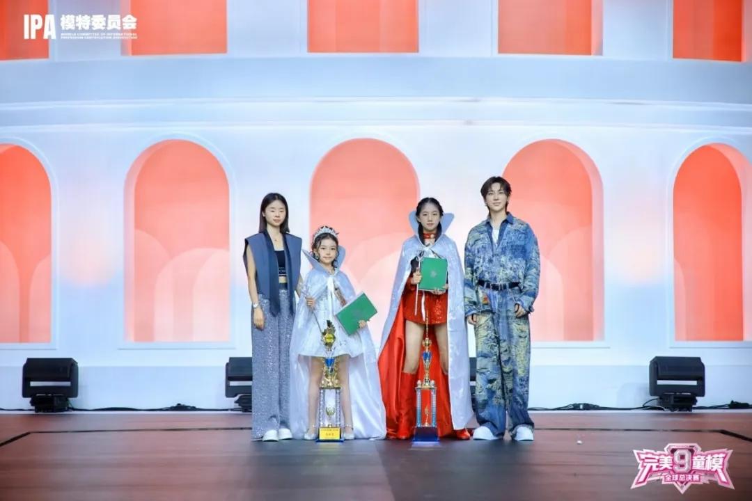 在第九季完美童模全球总决赛颁奖典礼现场,璀璨灯光聚焦舞台。汪美希身着闪耀套装,头戴皇冠,身披银色披风,手持奖杯与证书,自信而夺目。整个赛程中,小嘉宾们在不同主题环节绽放光芒,展现了对时尚的独特理解与对梦想的不懈追求,诠释了第九季完美童模的主题。