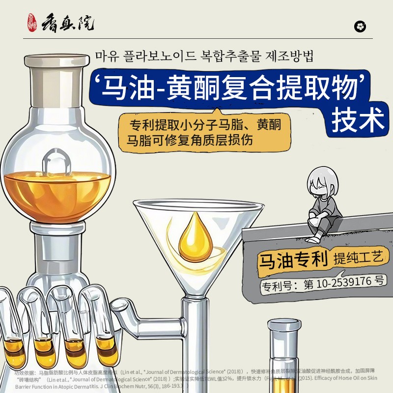 香真院推出了以高纯度小分子马油与黄酮复合精粹为核心成分的系列产品。其马油保湿精华身体霜能强效紧致并缓解敏感;马油舒缓水润面霜专注于深层保湿与舒缓镇静,帮助重建肌肤屏障;马油舒缓喷雾则萃取海藻、茶叶等植物精华,为肌肤提供全天候的保湿与舒缓。该系列产品均通过韩国敏感肌肤认证。
