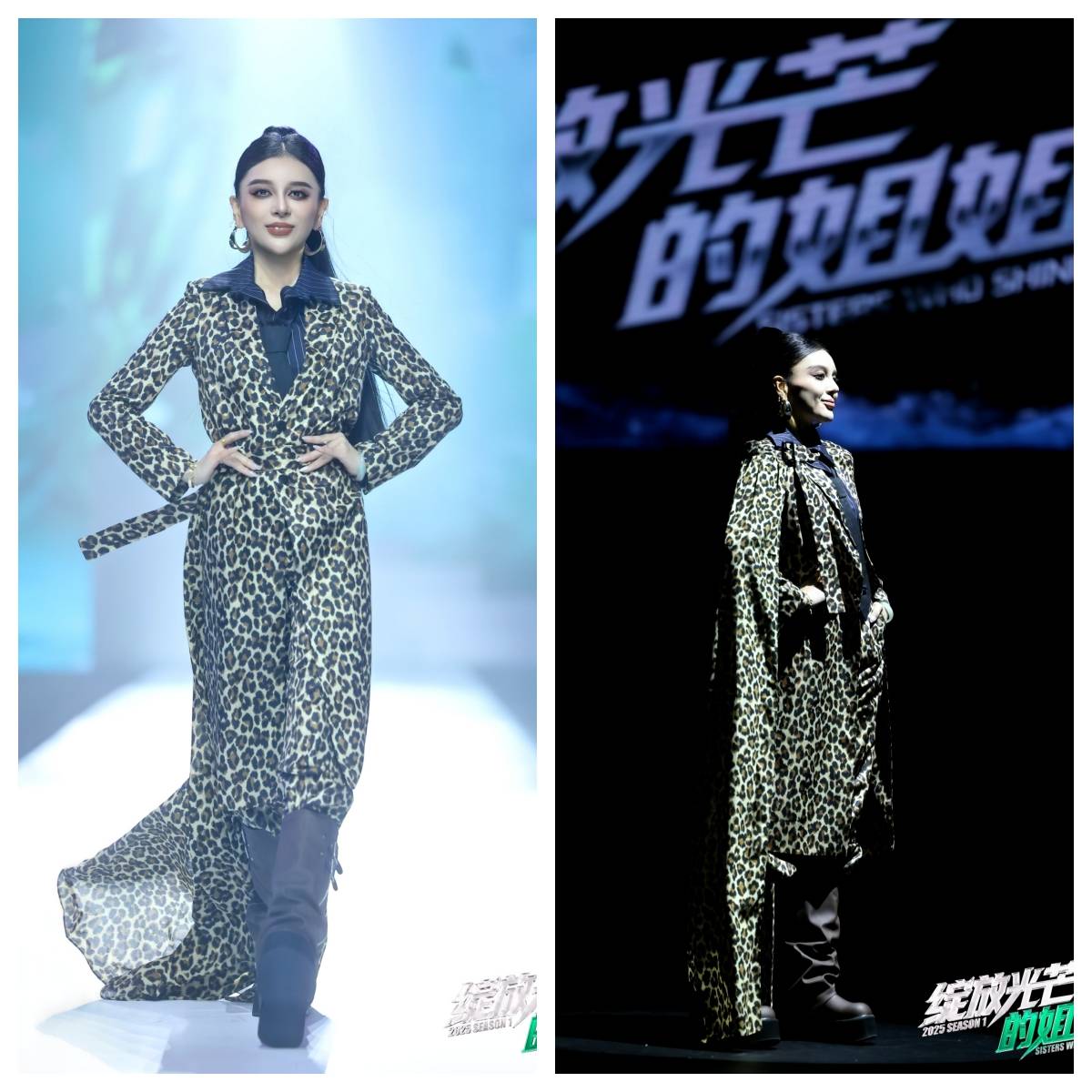 展演秀上,黄予歆姐姐身着豹纹服装惊艳亮相。豹纹元素向来以野性与时尚并存著称,而在她身上,更是被演绎得淋漓尽致。长款的豹纹外套随风轻摆,仿佛赋予了她丛林女王般的气场。