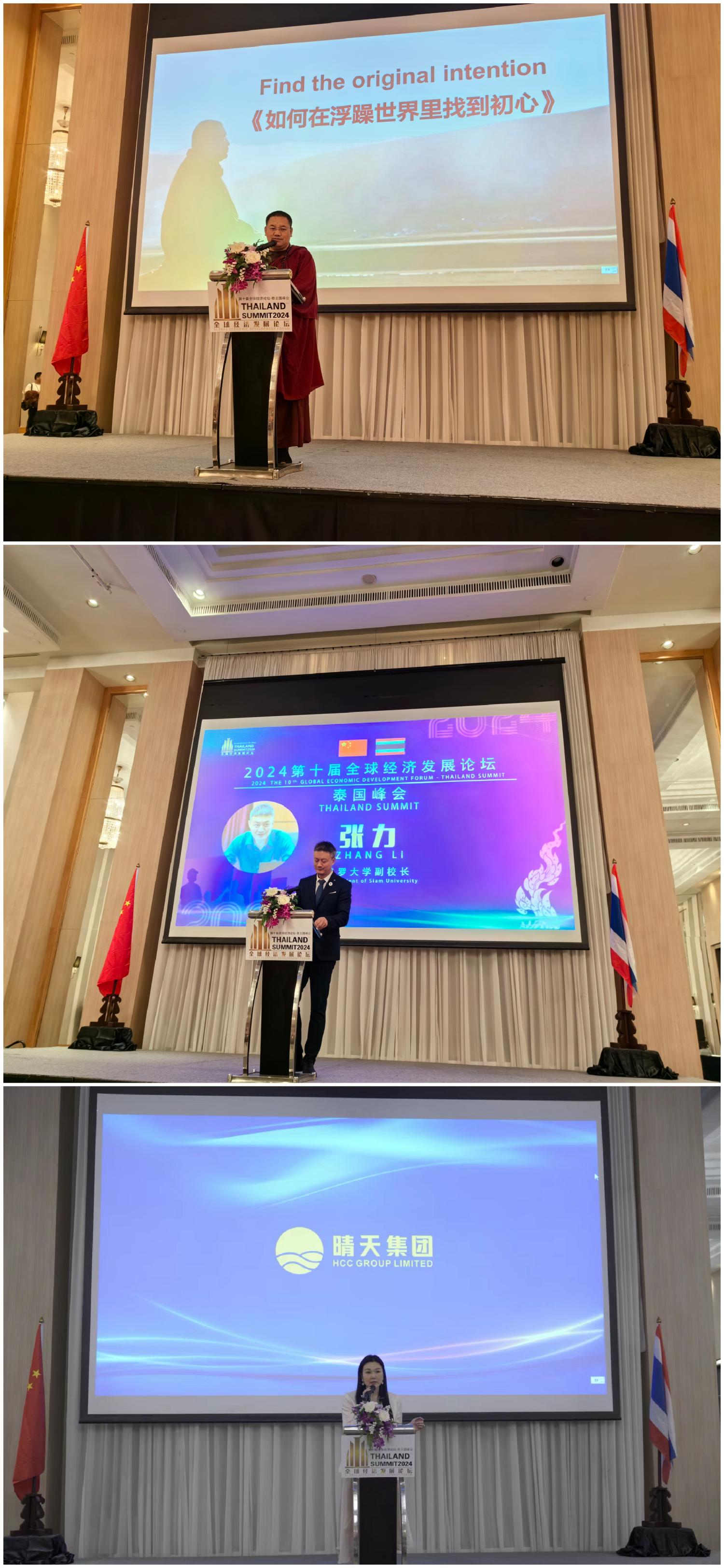 中国著名佛教学者加措仁波切的主题演讲“在浮躁的世界中找到初心”,如何保持内心的平静与智慧,他分享的哲理如一股清凉在大会上得到与会嘉宾的认同。泰国暹罗大学张力校长在演讲中对产业合作报告中详细分析了中国企业在东盟市场,尤其是泰国的机遇与挑战;晴天集团董事局主席洪子晴分享了晴天集团在多个行业的投资布局和在泰国的成功投资经验;